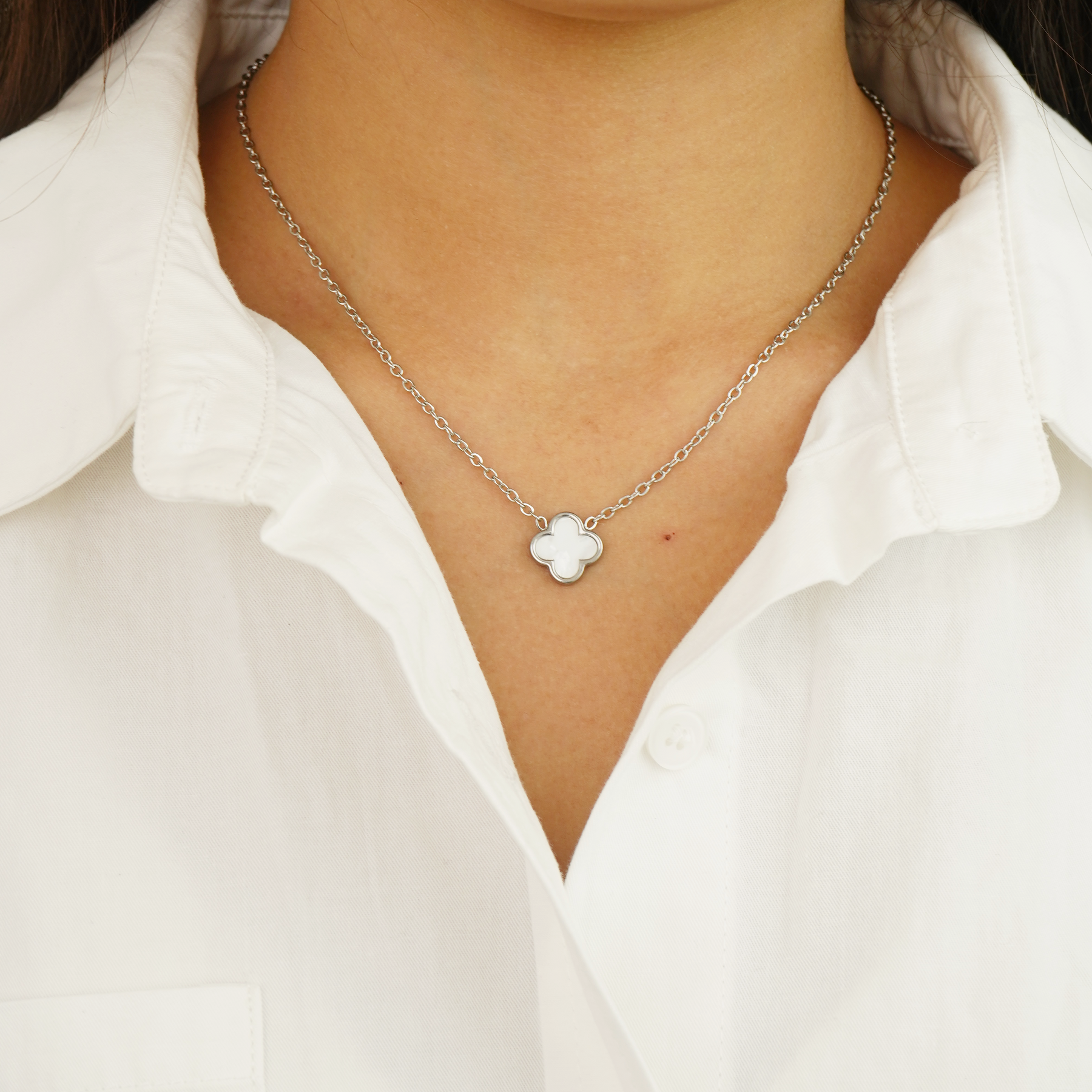 í Pearl clover necklace (Silver) – Luxus Love Jewellery